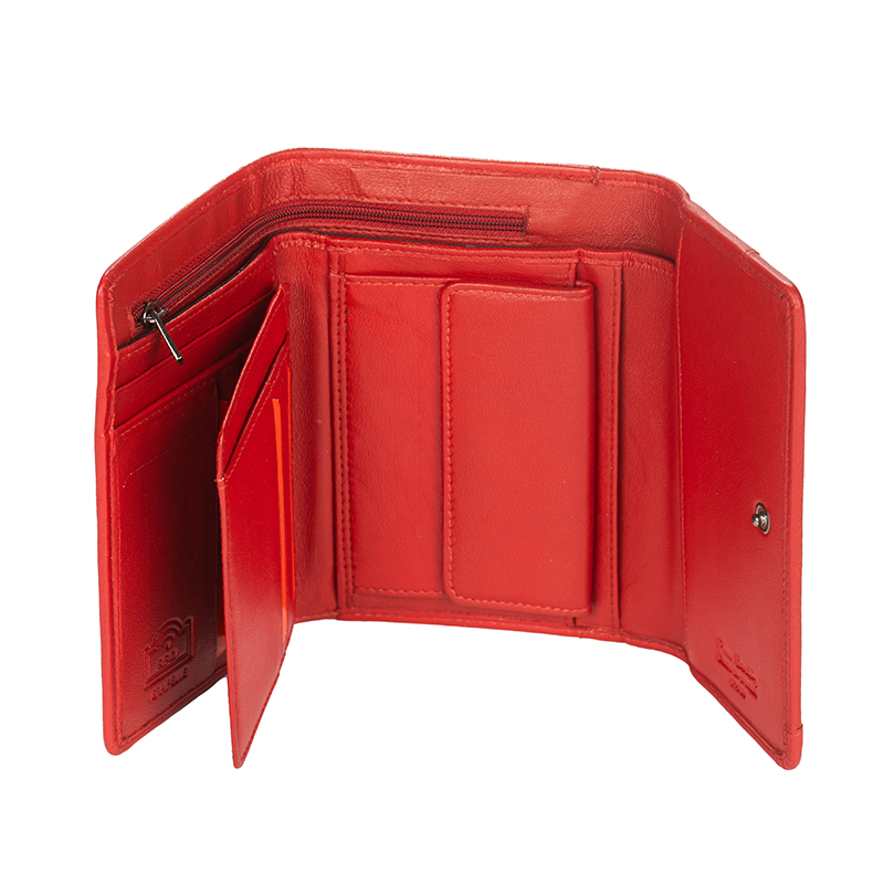 Aceast portofel de damă Pierre Cardin de un roșu intens este simbolul stilului și funcționalității. Confectionat din piele naturală cu o textură fină, modelul impresioneaza printr-un design simplu și elegant, completat de un logo-ul metalic discret . Dimensiunea compacta și interiorul bine organizat îl fac accesoriul perfect pentru femeia moderna.