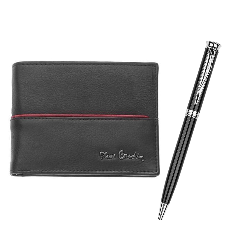 Set cadou elegant într-o cutie de lux, care conține un portofel și pix.